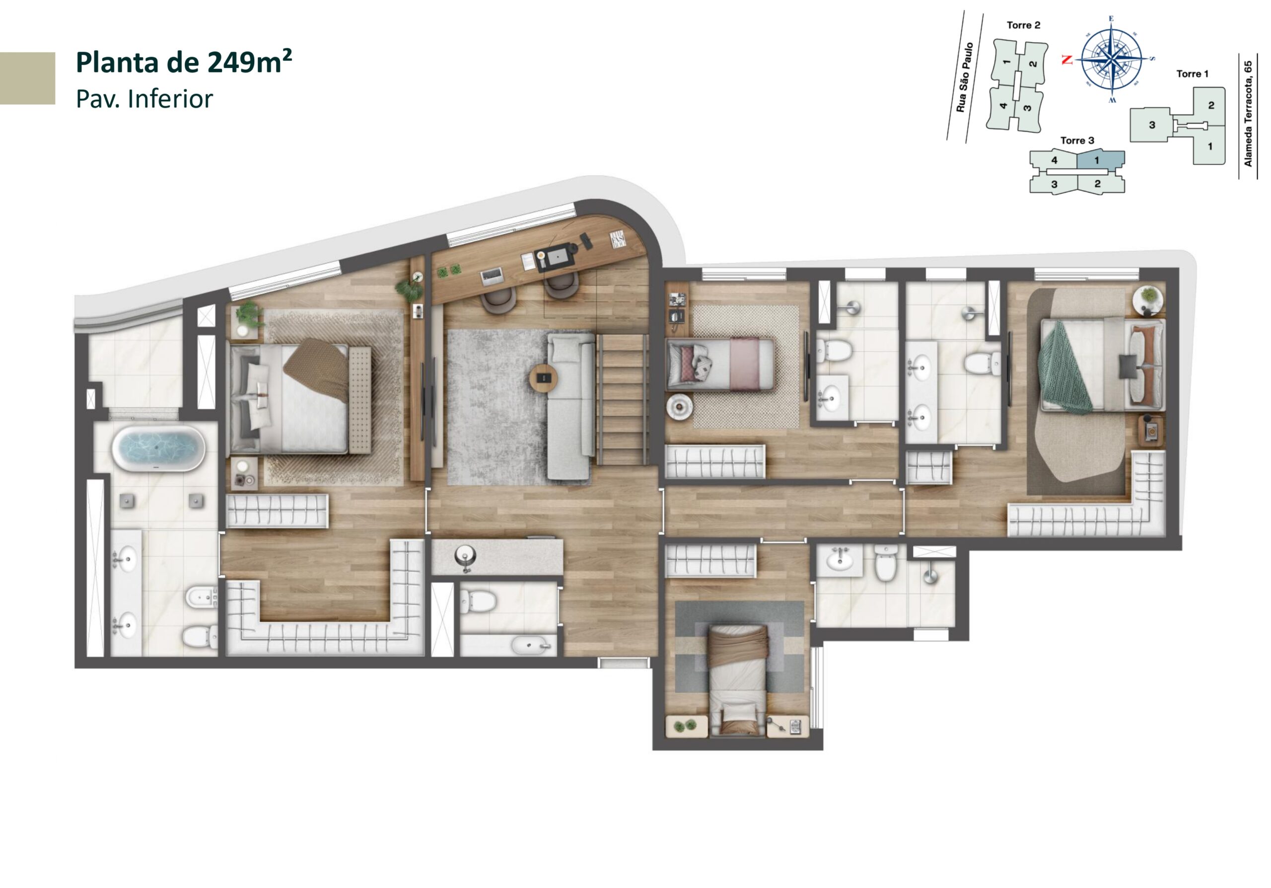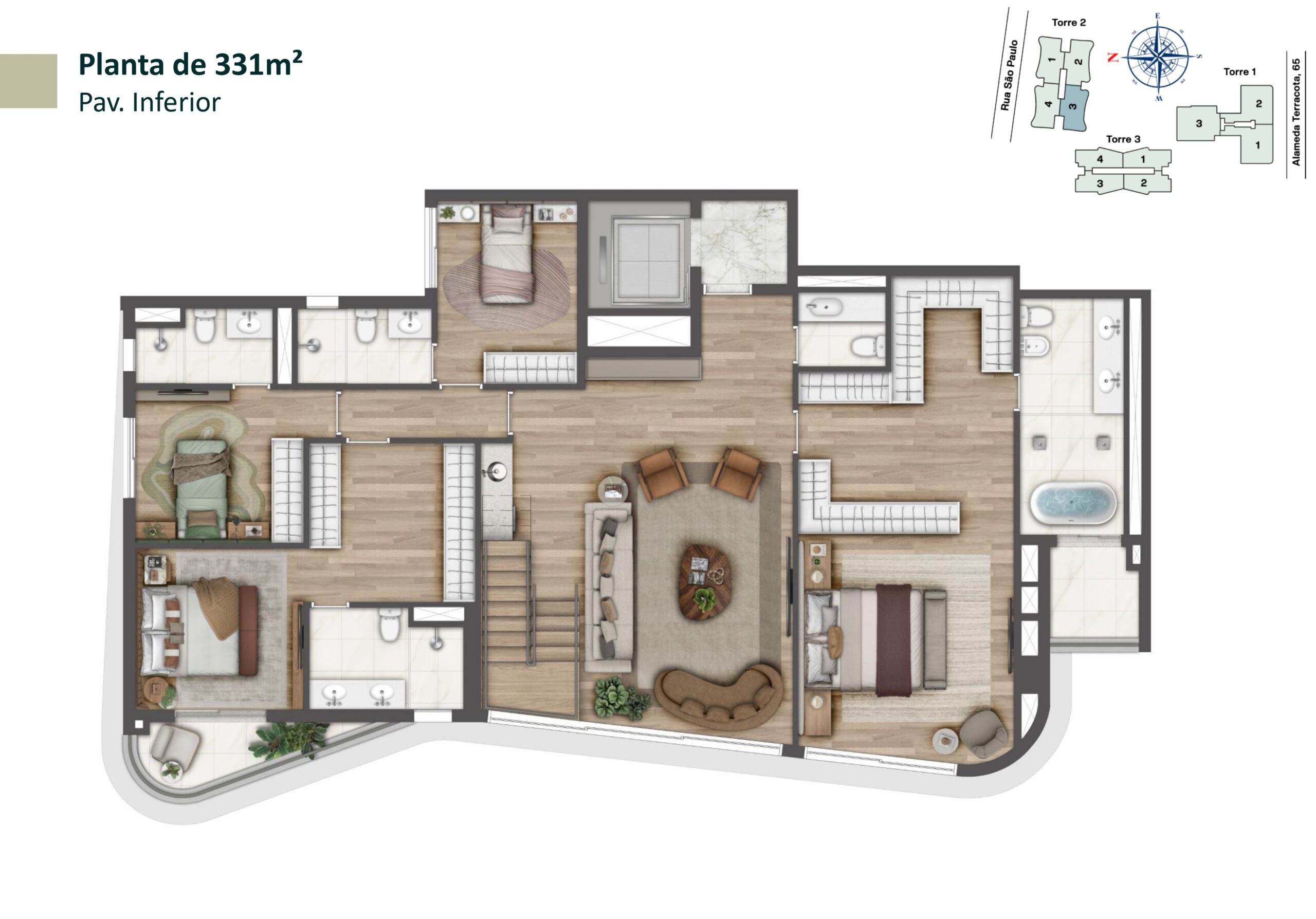 Projeto de áreas comuns: Carlos Rossi Arquitetura;